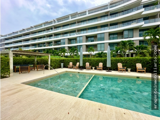 El apartamento cuenta con un gran balcon con una vista inigualable a la playa y a las hermosas zonas sociales de este condominio, con ubicacion Norte lo que lo hace mas fresco, con dos habitaciones con salida directa a la terraza y dos baños, amplia sala-comedor, cocina tipo americano, zona de labores, un parqueadero y un cuarto util.