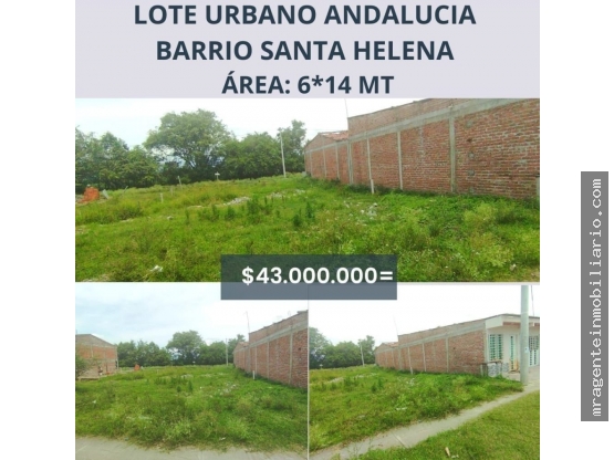 Vendo Lote Urbano Andalucia Barrio Santa Helena con un área de 84 Metros cuadrados